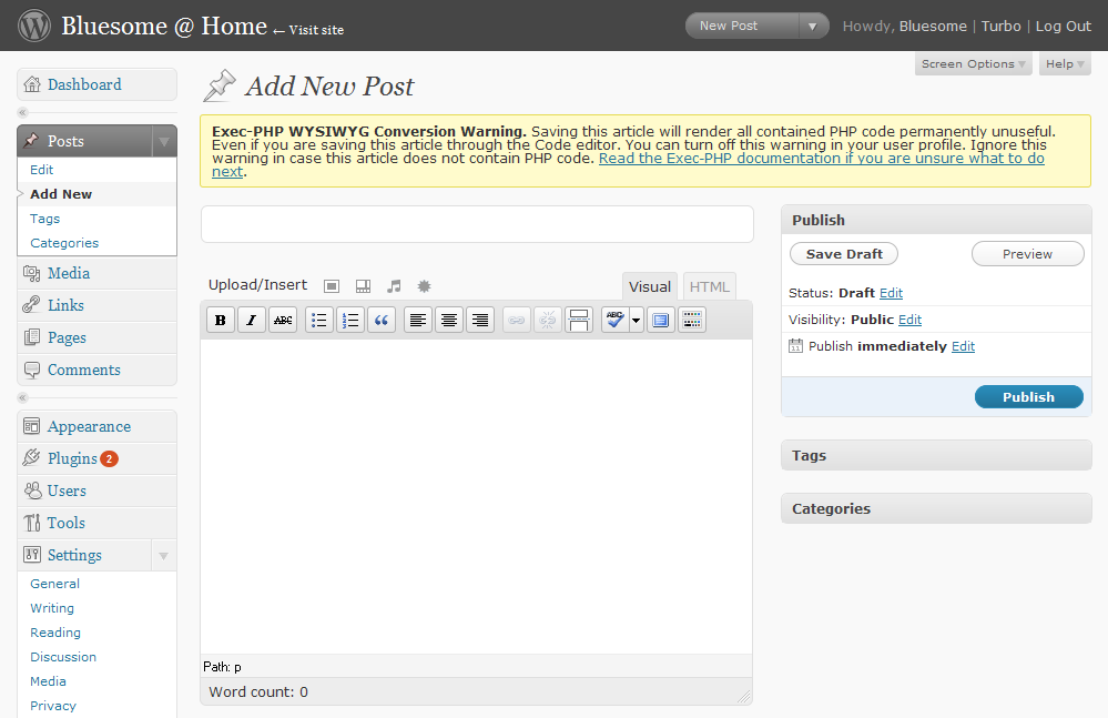 <title>Bluesome - Exec-PHP plugin for WordPress</title>