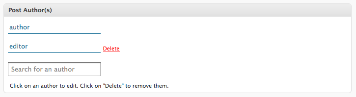 Allows multiple authors to be assigned to a Posts via search-as-you-type input boxes.